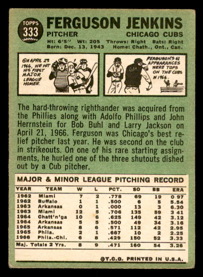 1967 Topps Baseball #333 Fergie Jenkins Cubs VG 541001