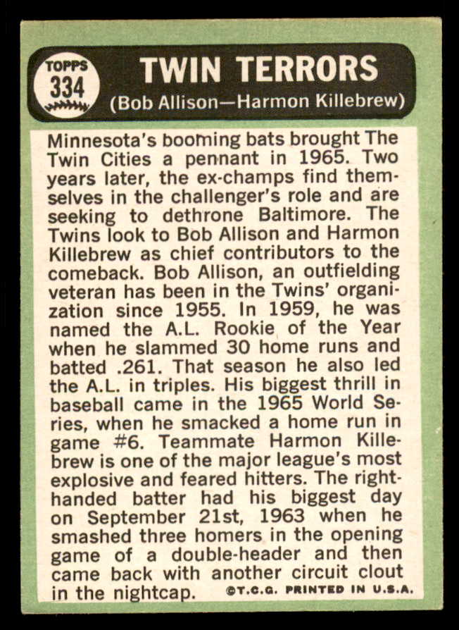 1967 Topps Baseball #334 Harmon Killebrew Bob Allison EX-MT 543280