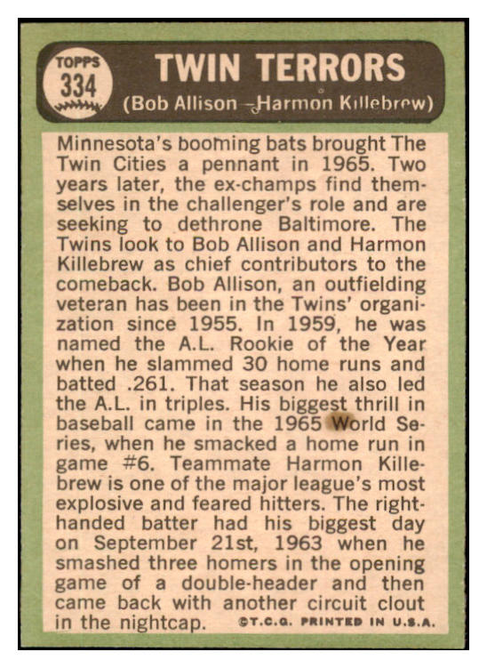 1967 Topps Baseball #334 Harmon Killebrew Bob Allison NR-MT 528958