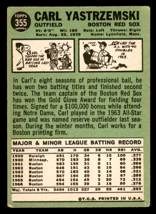 1967 Topps Baseball #355 Carl Yastrzemski Red Sox VG 540991