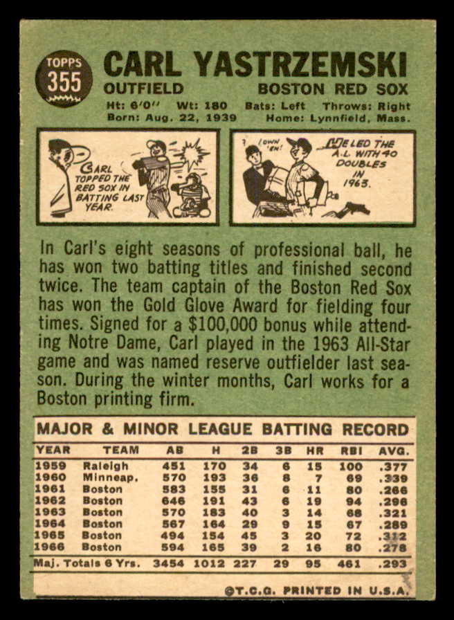1967 Topps Baseball #355 Carl Yastrzemski Red Sox VG-EX 539192
