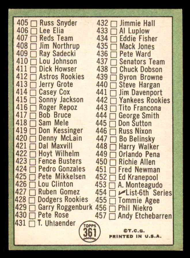 1967 Topps Baseball #361 Checklist 5 Roberto Clemente EX-MT 543281