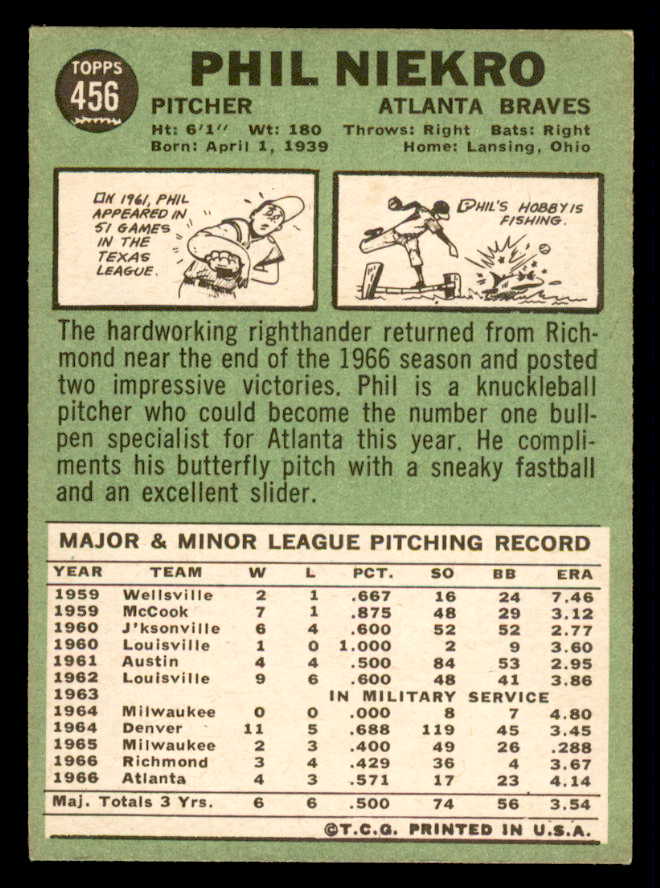 1967 Topps Baseball #456 Phil Niekro Braves EX+/EX-MT 540965