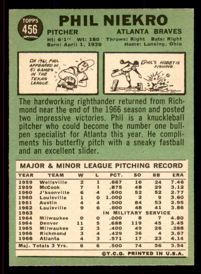 1967 Topps Baseball #456 Phil Niekro Braves NR-MT 545805