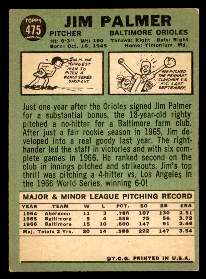 1967 Topps Baseball #475 Jim Palmer Orioles EX 539195