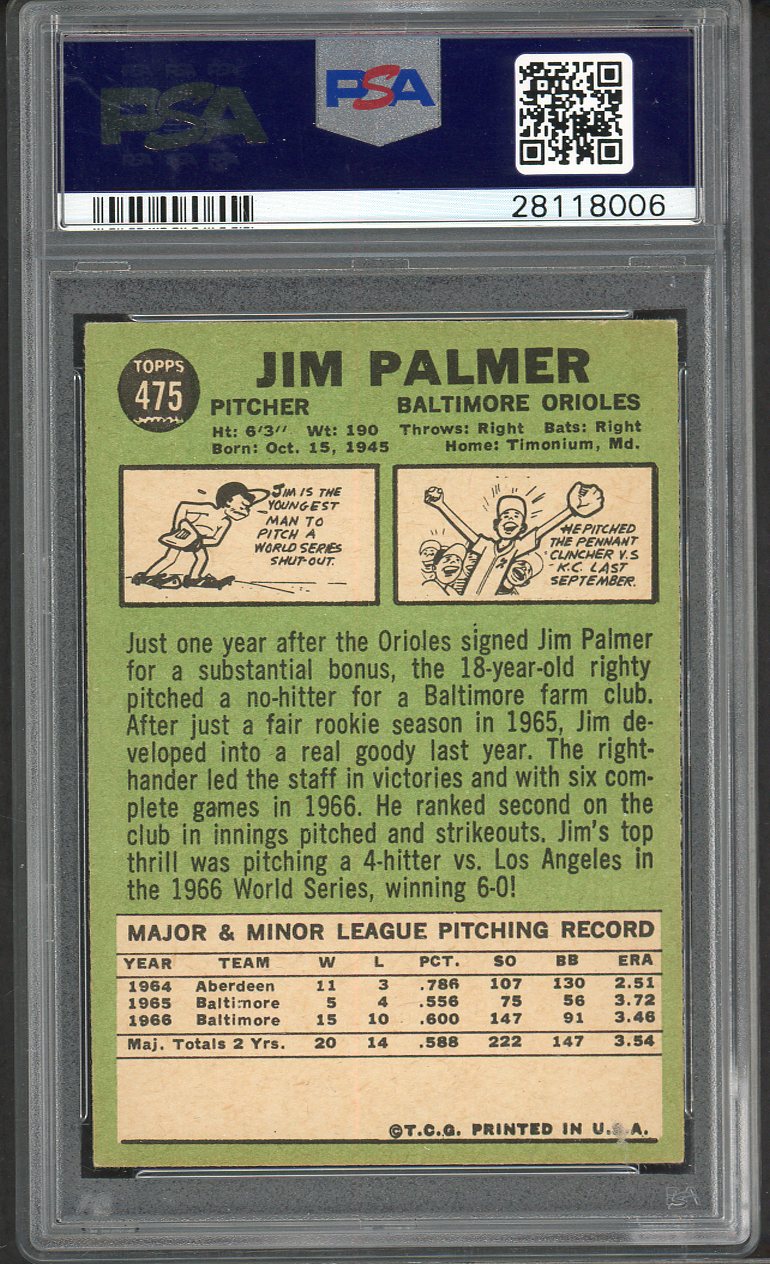 1967 Topps Baseball #475 Jim Palmer Orioles PSA 5 EX 547530