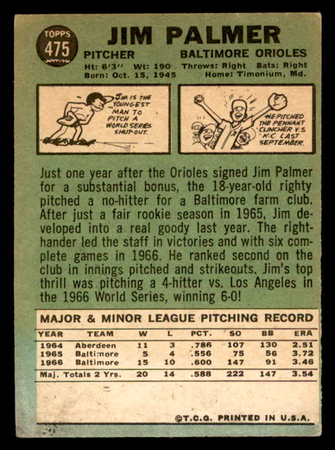 1967 Topps Baseball #475 Jim Palmer Orioles VG-EX 539196