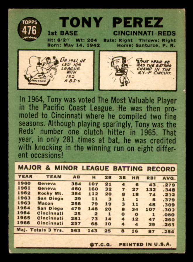 1967 Topps Baseball #476 Tony Perez Reds EX+/EX-MT 539200