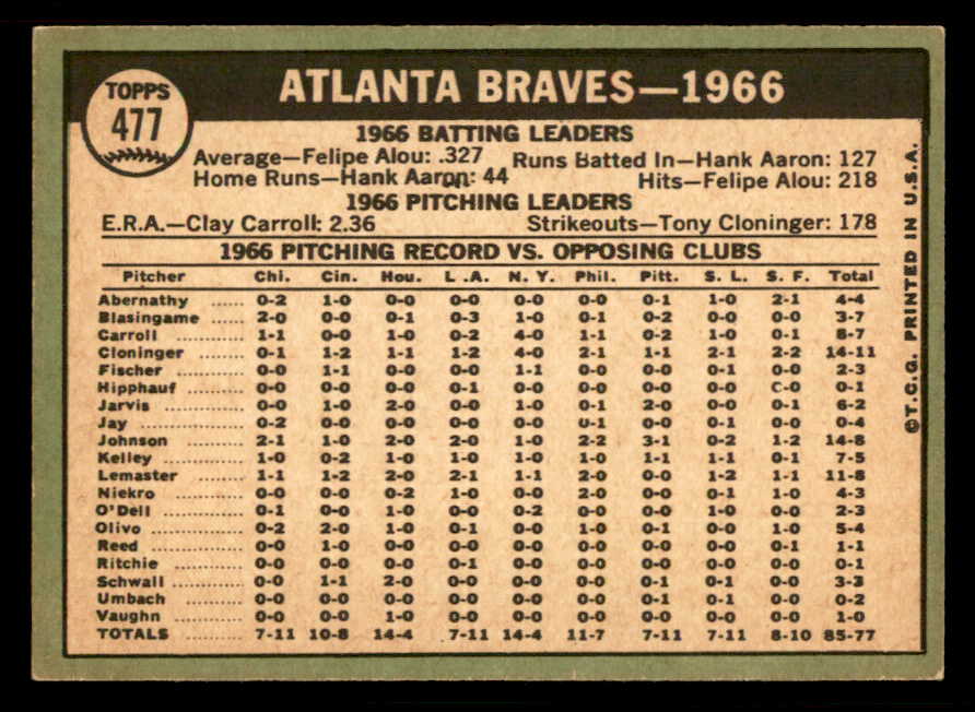1967 Topps Baseball #477 Atlanta Braves Team EX-MT 543277
