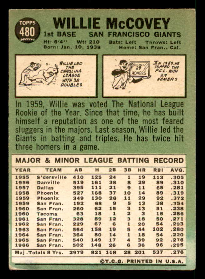 1967 Topps Baseball #480 Willie McCovey Giants VG-EX 539795