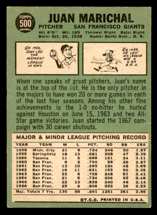 1967 Topps Baseball #500 Juan Marichal Giants EX 540958