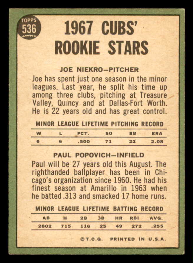 1967 Topps Baseball #536 Joe Niekro Cubs EX-MT 543010