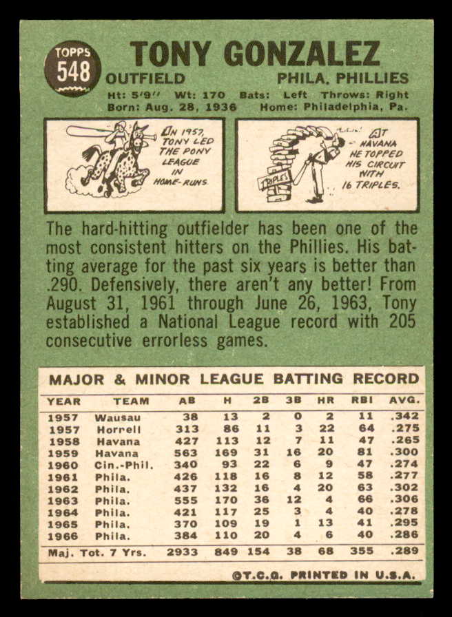 1967 Topps Baseball #548 Tony Gonzalez Phillies NR-MT 542964