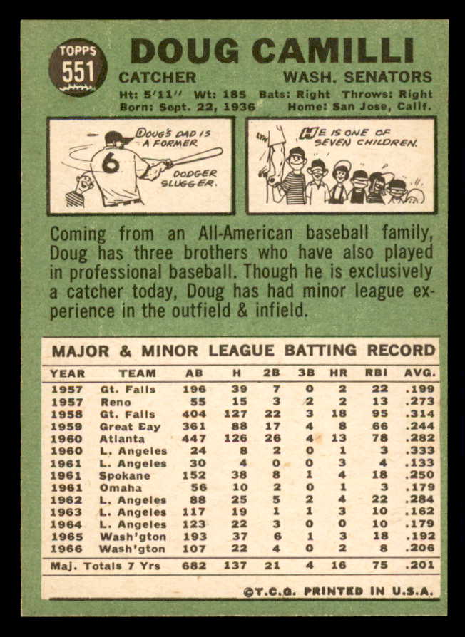 1967 Topps Baseball #551 Doug Camilli Senators EX-MT 540939