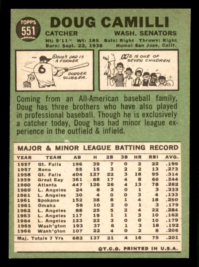 1967 Topps Baseball #551 Doug Camilli Senators EX-MT 543016
