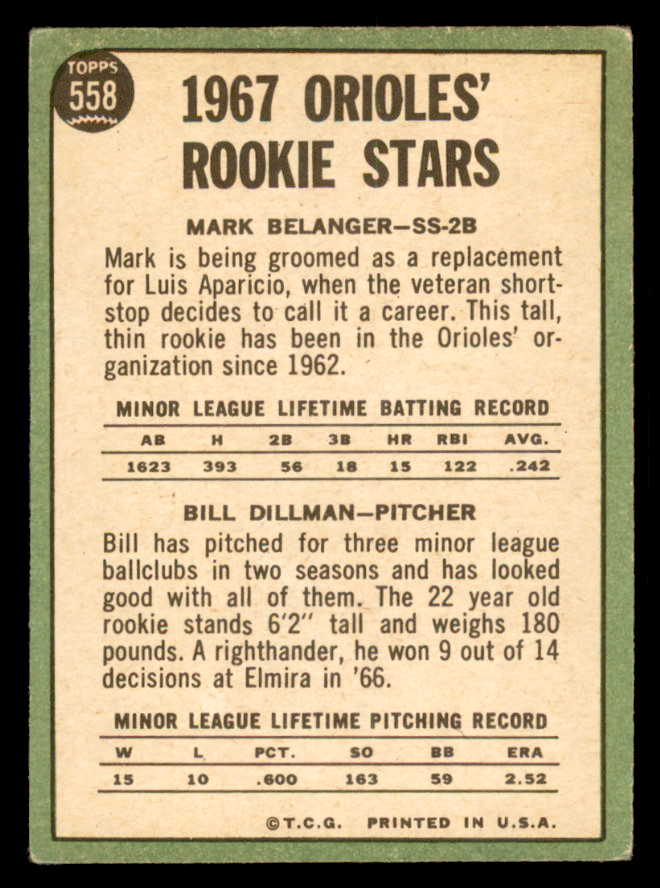 1967 Topps Baseball #558 Mark Belanger Orioles VG-EX 543082