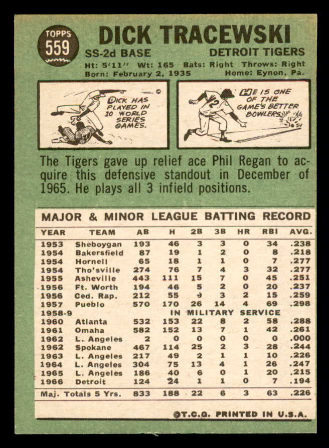 1967 Topps Baseball #559 Dick Tracewski Tigers EX-MT 540941