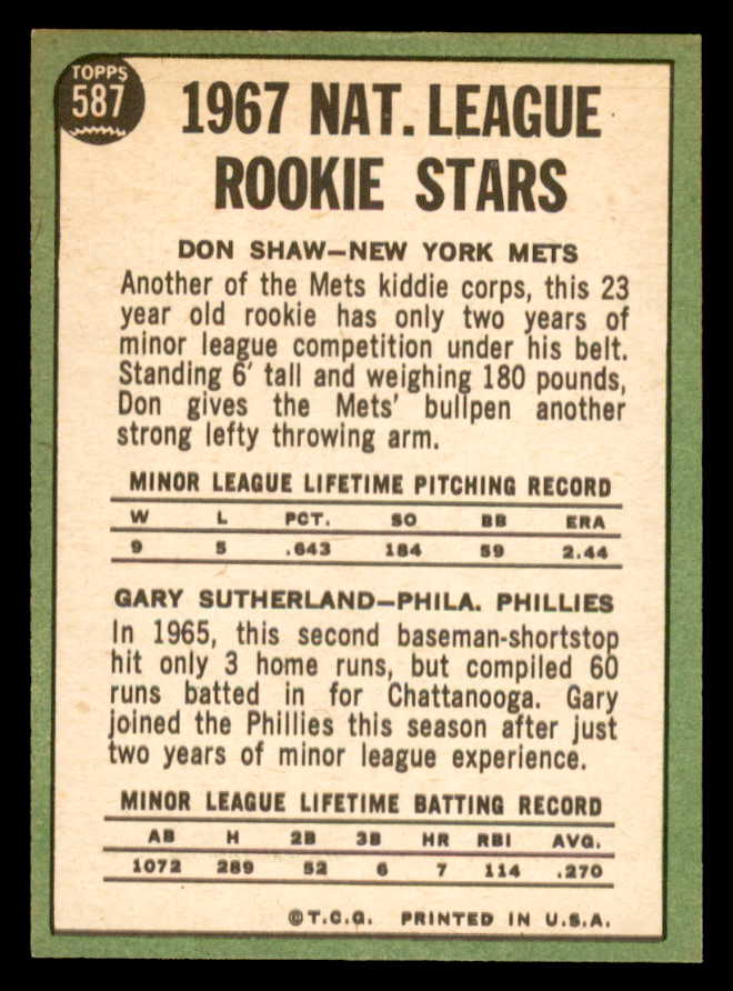 1967 Topps Baseball #587 Don Shaw Mets EX-MT 543030