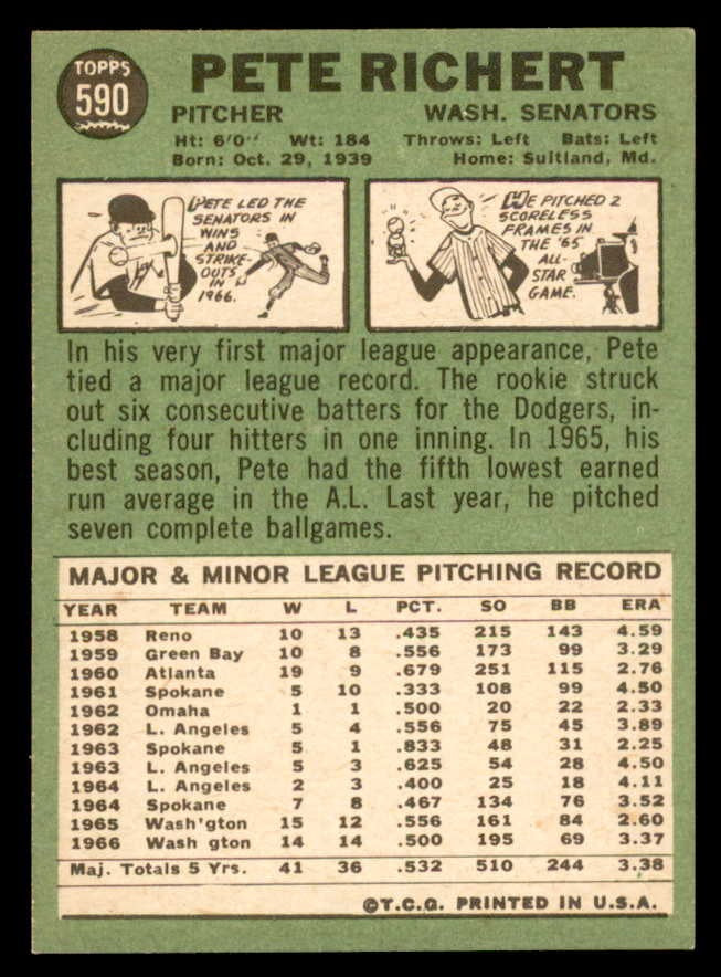 1967 Topps Baseball #590 Pete Richert Senators NR-MT 542993