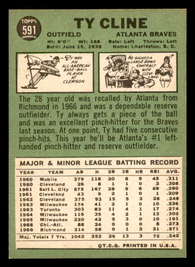 1967 Topps Baseball #591 Ty Cline Braves NR-MT 542995