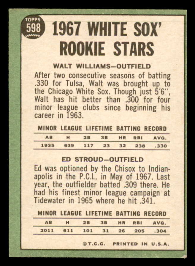 1967 Topps Baseball #598 Walt Williams White Sox EX-MT 543036