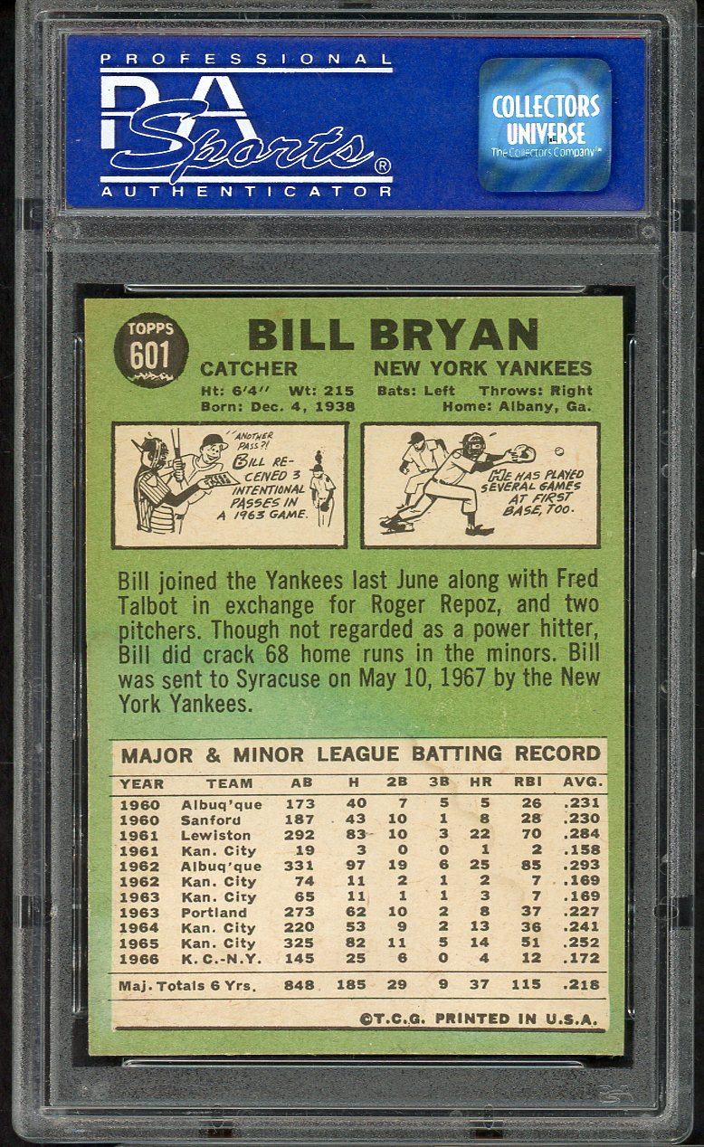 1967 Topps Baseball #601 Bill Bryan Yankees PSA 5 EX 545278