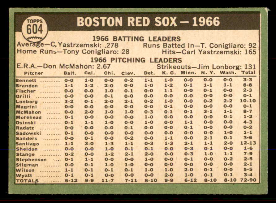 1967 Topps Baseball #604 Boston Red Sox Team EX+/EX-MT 545779