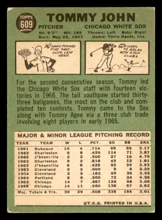 1967 Topps Baseball #609 Tommy John White Sox EX 541745