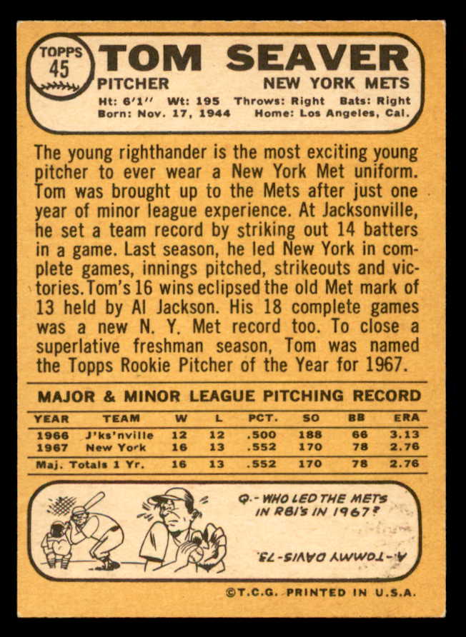 1968 Topps Baseball #045 Tom Seaver Mets EX-MT 546092