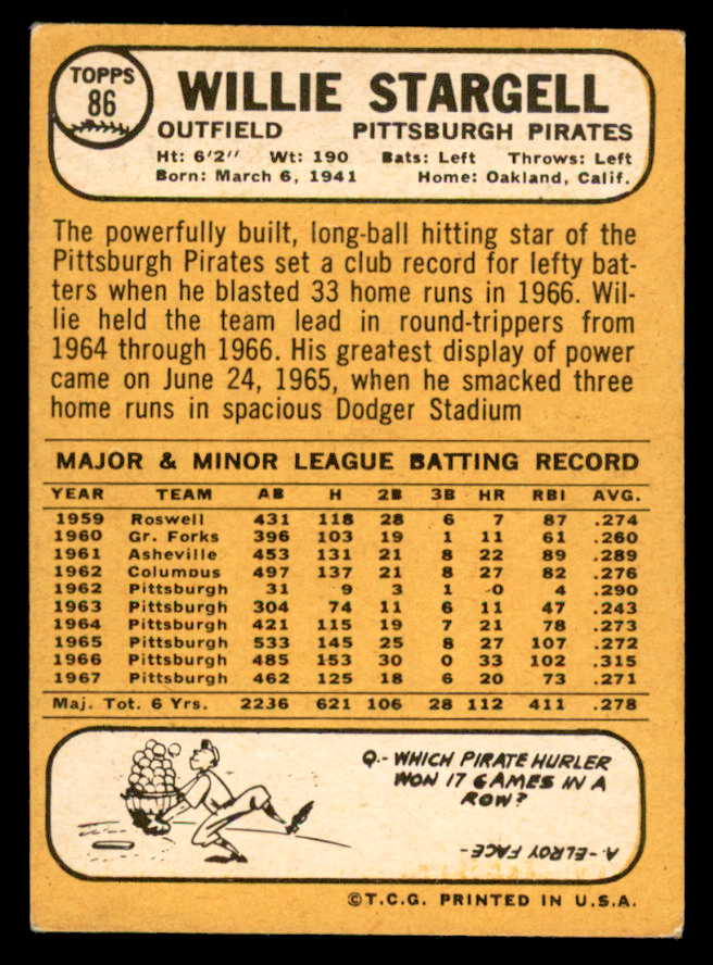 1968 Topps Baseball #086 Willie Stargell Pirates EX 541008