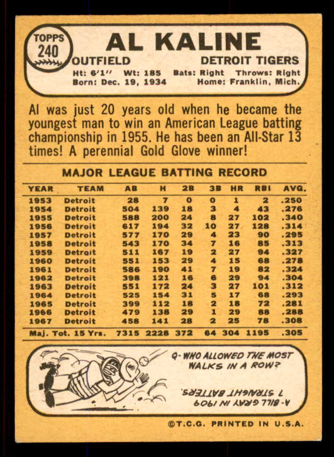 1968 Topps Baseball #240 Al Kaline Tigers NR-MT 545349
