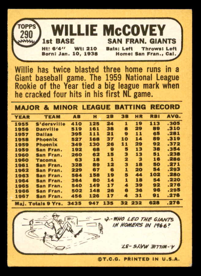 1968 Topps Baseball #290 Willie McCovey Giants VG-EX 546099