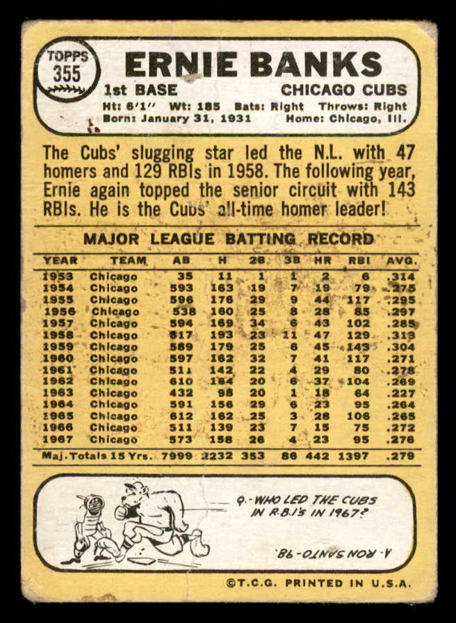 1968 Topps Baseball #355 Ernie Banks Cubs FR-GD 541059
