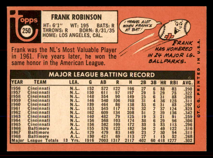 1969 Topps Baseball #250 Frank Robinson Orioles EX+/EX-MT 545404