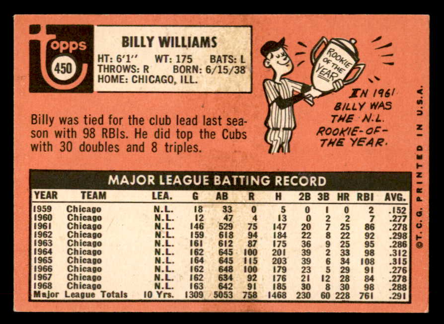 1969 Topps Baseball #450 Billy Williams Cubs EX+/EX-MT 541085