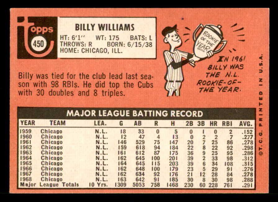 1969 Topps Baseball #450 Billy Williams Cubs EX-MT 539907
