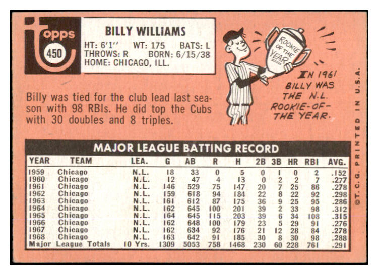 1969 Topps Baseball #450 Billy Williams Cubs VG-EX 530478