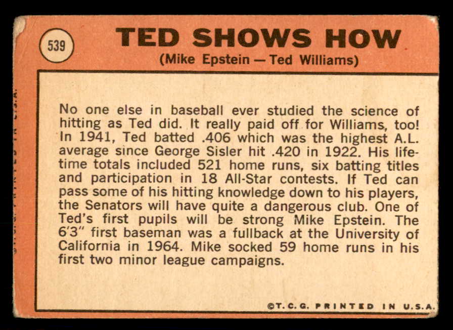 1969 Topps Baseball #539 Ted Williams Mike Epstein FR-GD 541108
