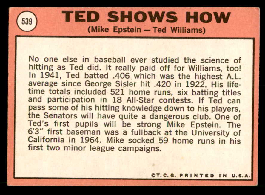 1969 Topps Baseball #539 Ted Williams Mike Epstein VG-EX 539912