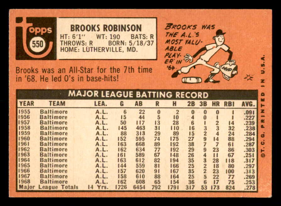 1969 Topps Baseball #550 Brooks Robinson Orioles EX+/EX-MT 541090