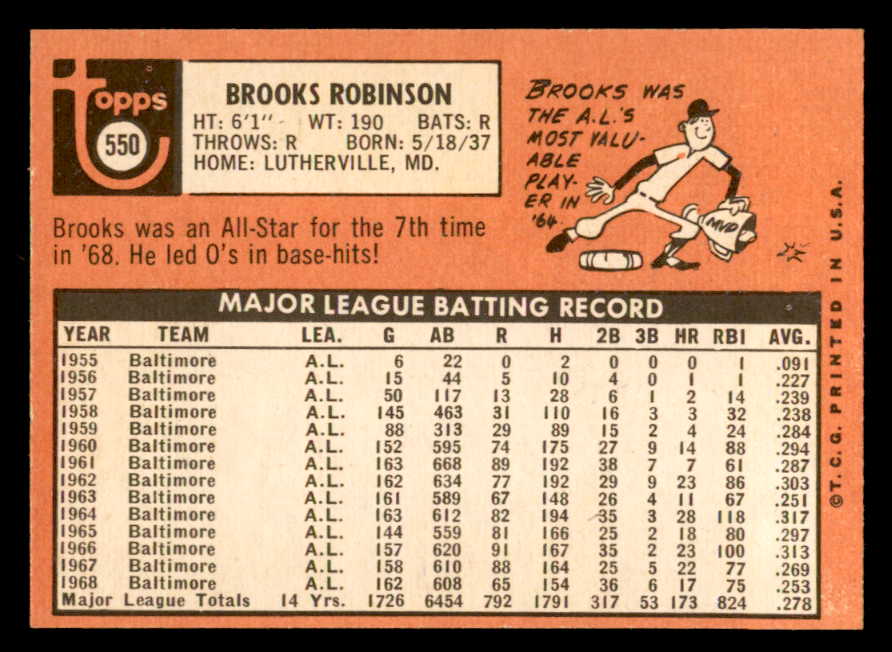 1969 Topps Baseball #550 Brooks Robinson Orioles NR-MT 538927