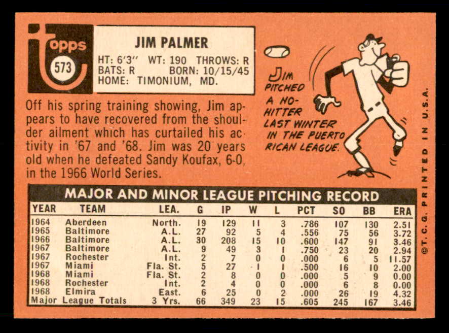 1969 Topps Baseball #573 Jim Palmer Orioles EX-MT 539865