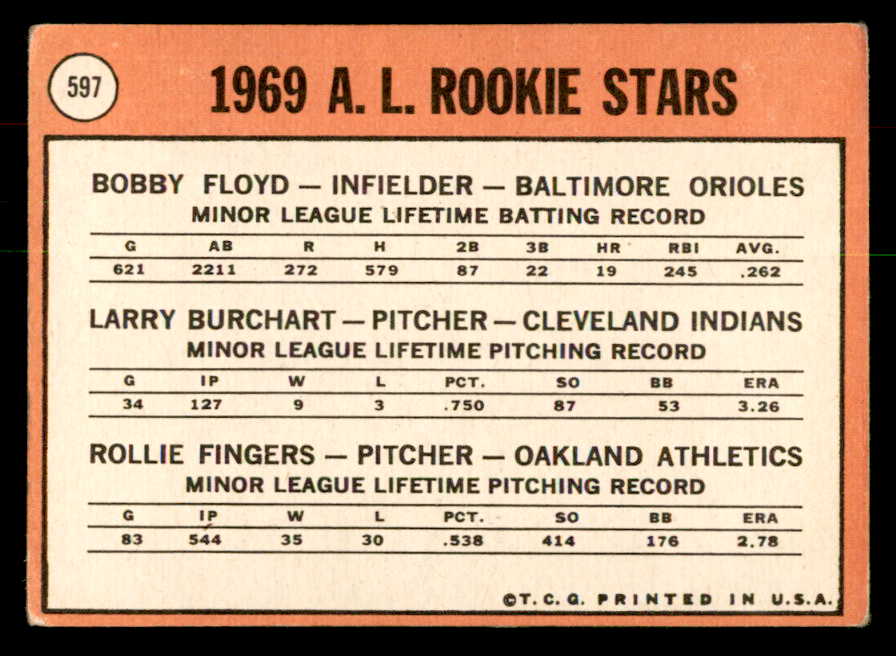 1969 Topps Baseball #597 Rollie Fingers A's EX 541371