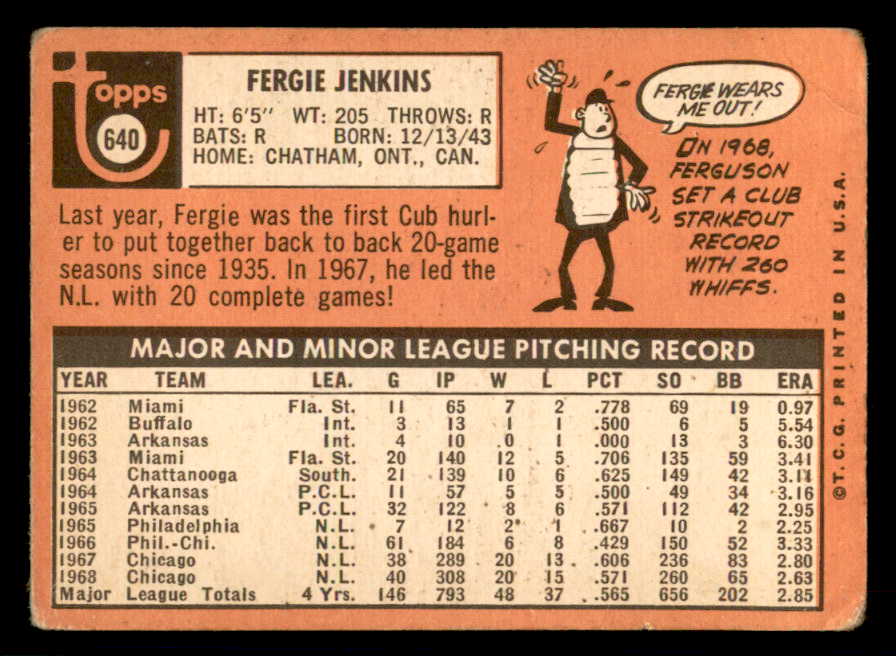 1969 Topps Baseball #640 Fergie Jenkins Cubs GD-VG 541139