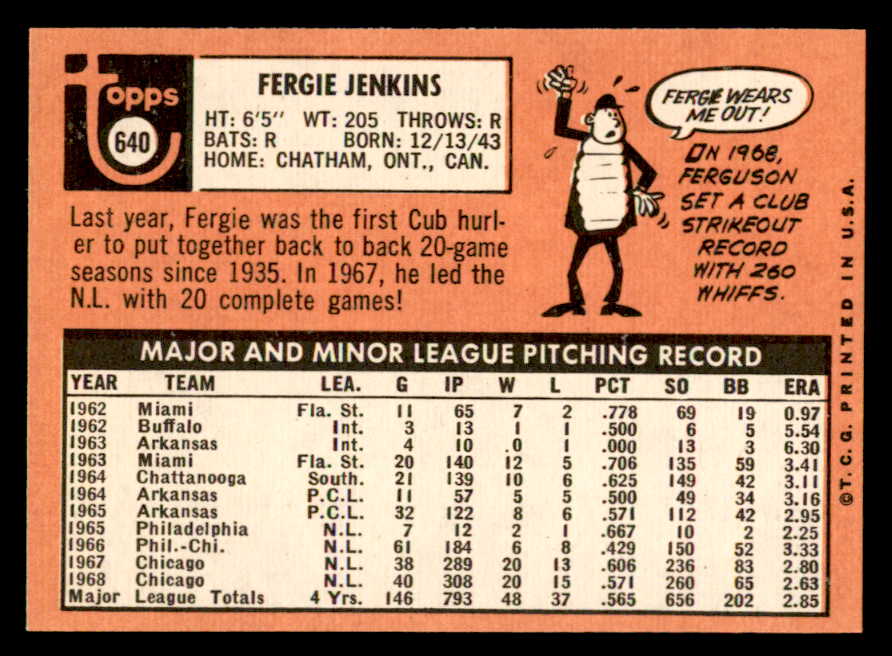1969 Topps Baseball #640 Fergie Jenkins Cubs NR-MT 538920