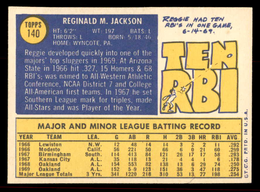 1970 Topps Baseball #140 Reggie Jackson A's EX+/EX-MT 545602