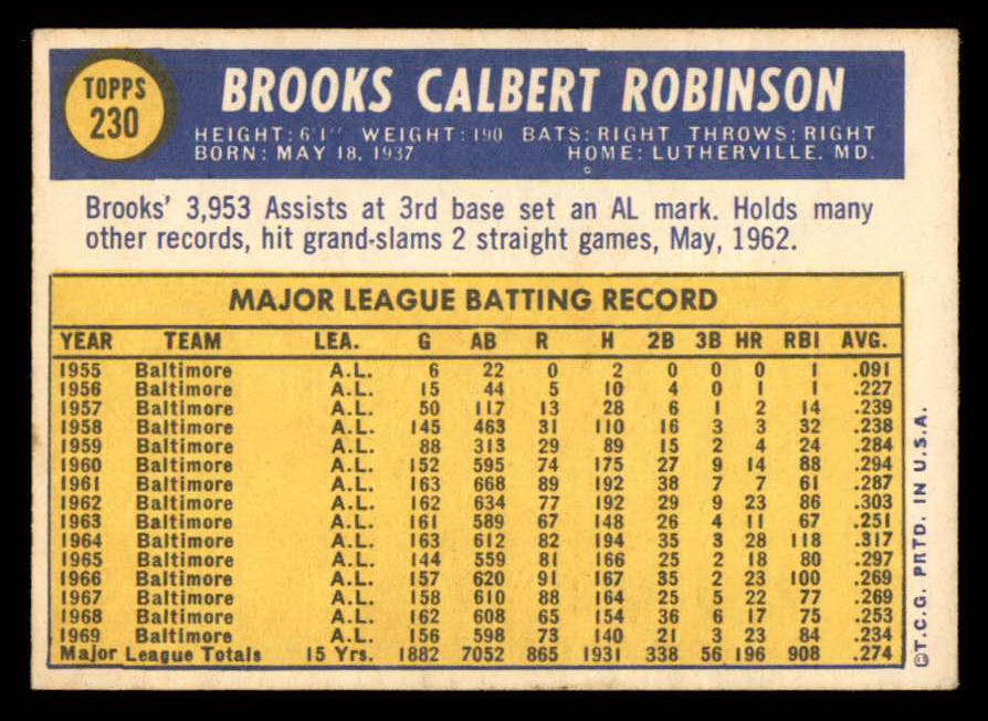 1970 Topps Baseball #230 Brooks Robinson Orioles EX+/EX-MT 541435