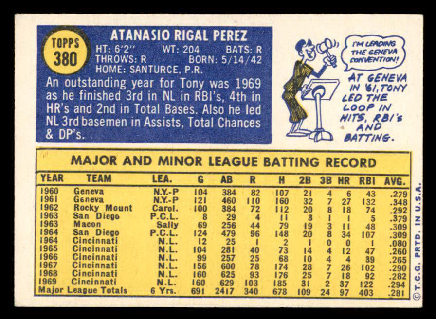 1970 Topps Baseball #380 Tony Perez Reds EX 546025