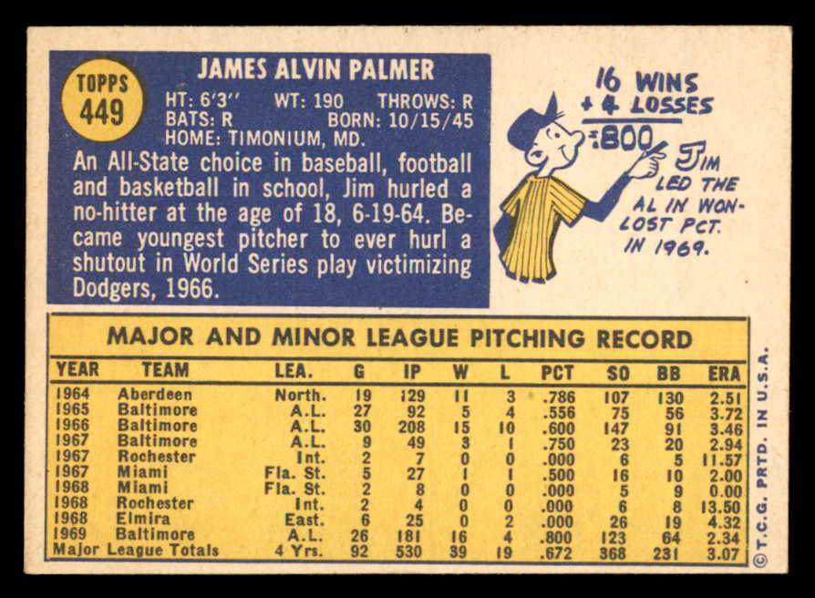 1970 Topps Baseball #449 Jim Palmer Orioles EX+/EX-MT 546024