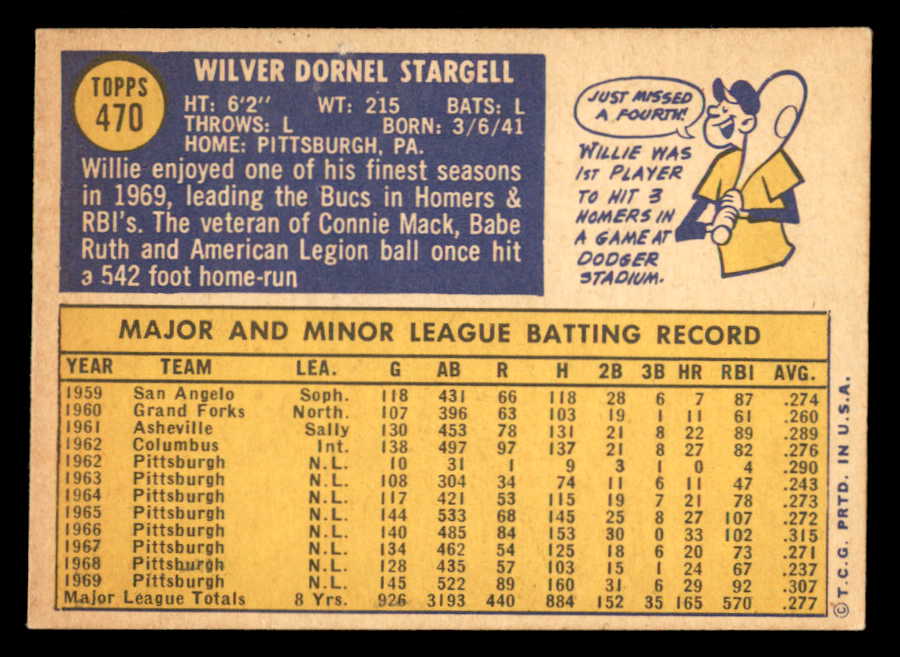 1970 Topps Baseball #470 Willie Stargell Pirates EX+/EX-MT 546015